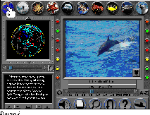 It includes a text window, a full colour photograph, a globe detailing where the particular creature can be found and but- tons for features, like printing.