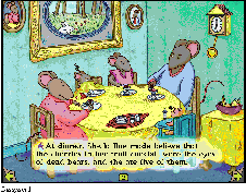 It is the quality of these animations that makes the Living Books so popular with younger readers. In fact, one has the choice of reading the story through, (without any of the animations) or of interacting with it.
