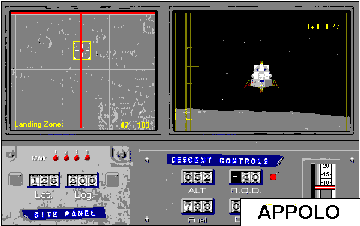 APOLLO Apollo - Mission to the Moon 1.0 challenges you to take command of an Apollo spacecraft bound for the moon and back. Photo-realistic graphics combined with authentic audio will place you inside the cramped craft as it descends to the lunar surface. The game is divided into three distinct phases: Lunar landing, orbital docking, and Earth re-entry. Requires a 486 with 8MB RAM, and a sound card. (Reg.Fee: $10)
