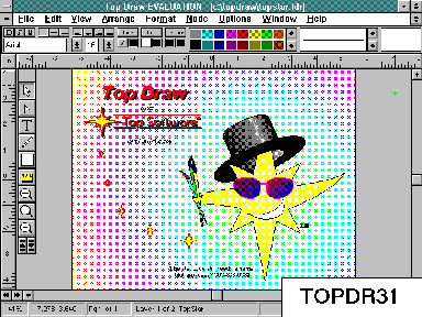 TOPDR31 Top Draw 3.10 is a sophisticated drawing program for WIN31. It can be used for desktop publishing, illustrations, diagrams, logos, brochures, newsletters, and more. (Reg.Fee: $50)