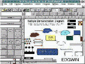 EDGWIN EDGE Diagrammer 2.00 is a powerful flowcharting and diagram drawing tool for WIN31. Features include over 100 predefined shapes and arrows, the ability to create custom shapes using a built-in macro language, full pan and zoom support, and more. (Reg.Fee: $90)