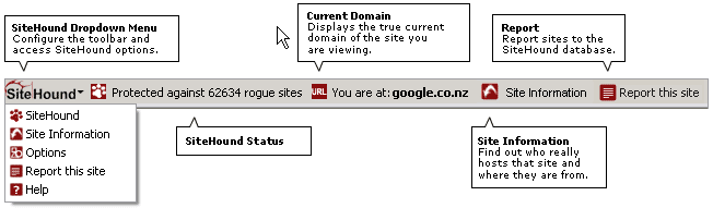 Site Information image is available.Once installed SiteHound requires registration to create a user ID in order to use the software. This is sent as email and entered in the user account to activate the program SiteHound maintains an extensive database of malicious websites that is constantly being updated by security experts assisted by the user community. Database updates can be scheduled in the registered version and will automatically update every day. Unregistered users must check manually to ensure that they always have the latest additions.You are encouraged to report suspicious sites by filling in the eminently clear form provided by the toolbar. The report asks that you categorise the URL when it is not patently obvious, and defines a number of categories including Adware, Phishing, Adult material, Scams, Spyware and so on. |